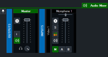 Click the M, A or B buttons underneath each input to configure each independent each mix. By default all new inputs will be sent to the Master mix only.